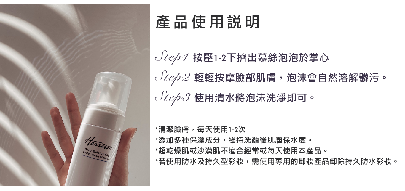 深層潔顏慕斯,能夠清潔空氣中殘留於肌膚的油脂髒污,也可輕鬆卸除日常妝容。添加高濃度玻尿酸,可維持肌膚保水度,不因清潔而乾澀。